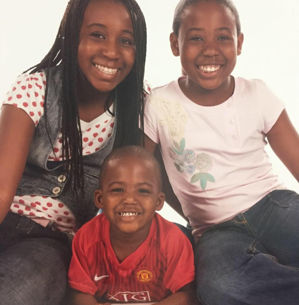 Kobbie Mainoo with his two sisters when he was a child. Credit: goal90